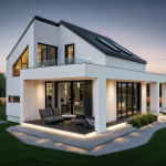 Ova moderno projektirana kuća nudi savršenu ravnotežu između dizajna i funkcionalnosti. S tri spavaće sobe, kupaonicom i dodatnim WC-om, kuhinjom s blagovaonicom te prostranim dnevnim boravkom, idealna je za obiteljski život. Dvije terase omogućuju boravak na otvorenom u svim dijelovima dana, dok natkriveni parking i dodatno spremište doprinose svakodnevnoj praktičnosti. Čiste linije, velika stakla i diskretna LED rasvjeta čine ovu kuću izrazito modernom i atraktivnom.